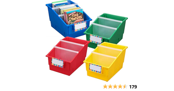 Storex Small Book Bin Interlocking Plastic Organizer for Home Office and Classroom Black 6-Pack 70123E06C View on Amazon. Classroom Stacking Bins - 12 bins. 39 Add to Cart.